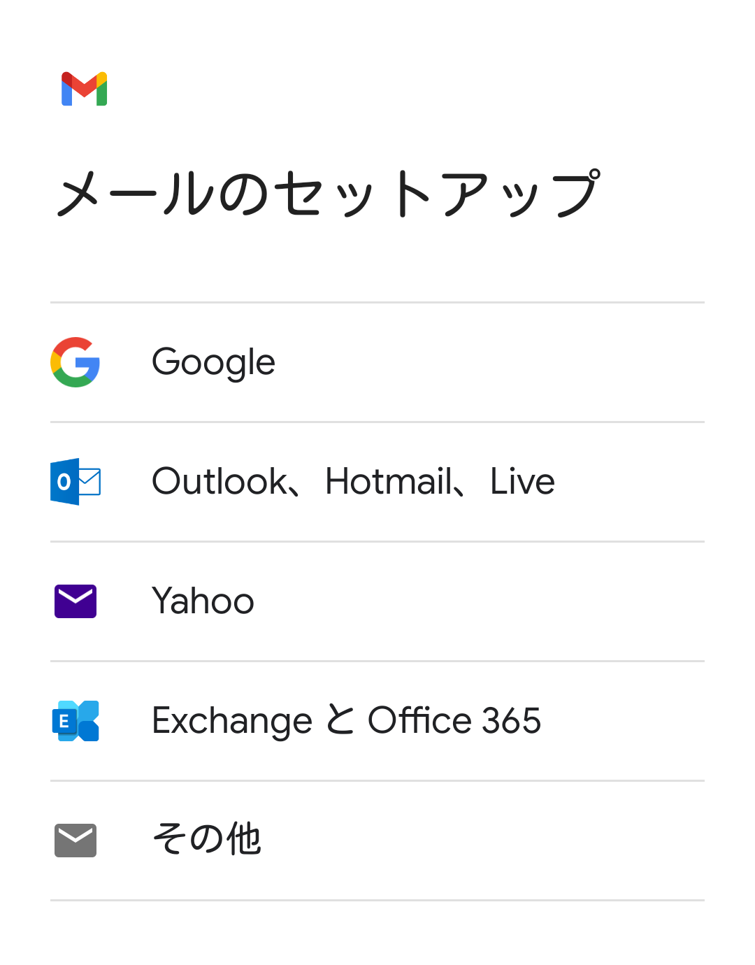 (2)他社メール(Yahoo・Outlookなど)を選択