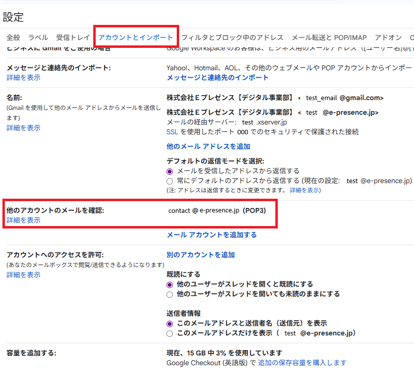 ・Gmail上で他社のメールアカウントをPOPで受信している