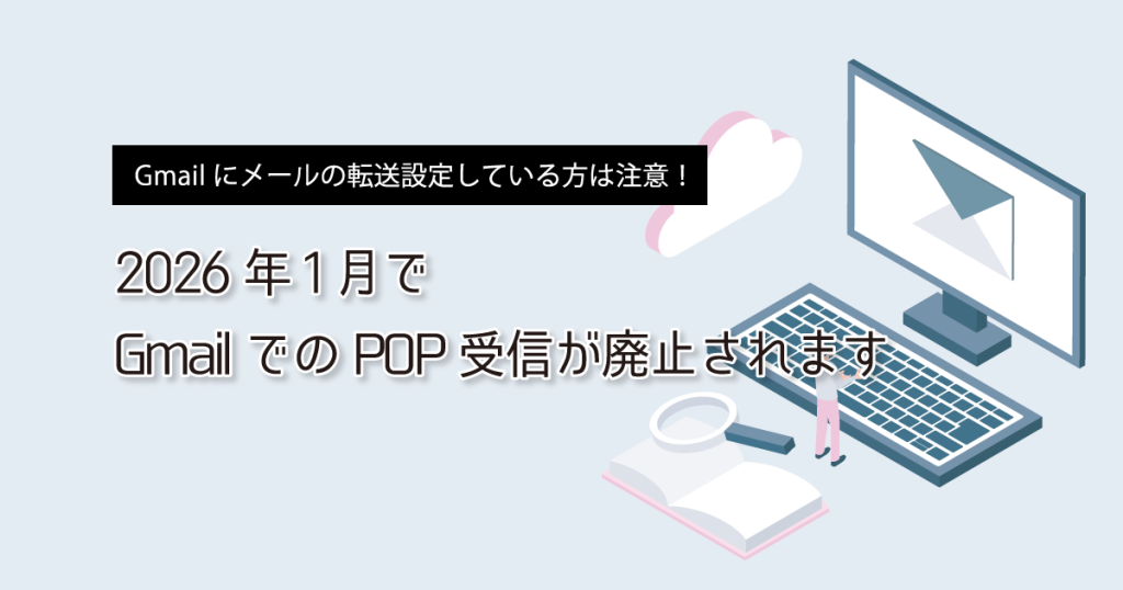 Googleは2025年9月、GmailにおけるPOP(Post Office Protocol)およびGmailifyのサポートを2026年1月で終了すると発表しました。この変更により、Gmail上で他社メールアカウントをPOP方式で受信している場合、設定変更が必要となります。