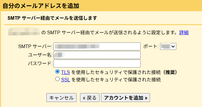 SMTPサーバーレンタルサーバーの管理画面/メール設定*****.xserver.jp